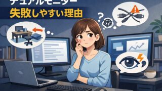 在宅ワーク初心者がデュアルモニター導入で後悔しやすい原因を整理。机の広さ・視線移動・接続や設定の落とし穴、向いていないケースと判断基準を解説します。
