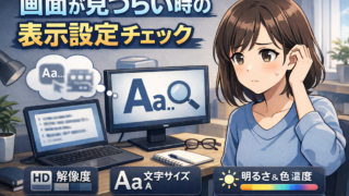 在宅ワーク中に画面が見づらいと感じたとき、まず確認したい表示設定(拡大縮小・解像度・文字サイズ等)と見直しの順番を初心者向けに整理します。