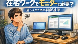 ノートPC中心の在宅ワークでモニターが必要か不要か迷う人向けに、いらない人の特徴と判断基準を3つに整理。後悔しにくい決め方を解説。