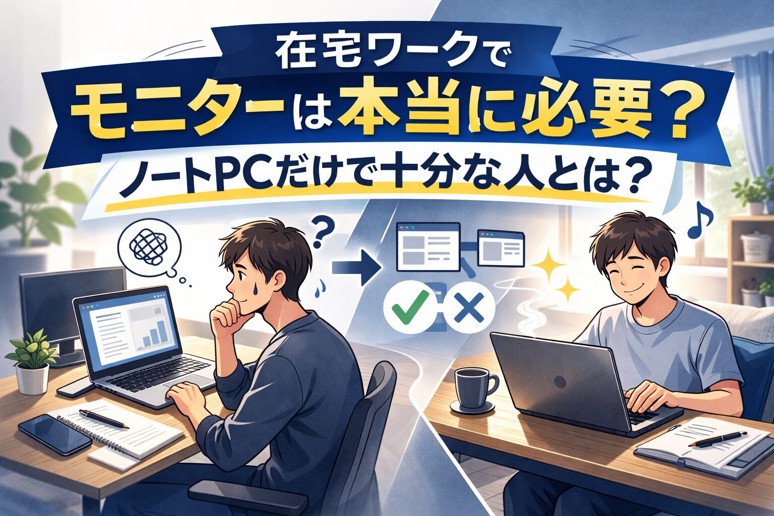 在宅ワークを始めると、まず迷うのが「モニター(外部ディスプレイ)って本当に必要?」という点です。