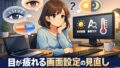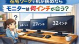 机の狭さは、モニターのサイズや解像度、デュアル運用、アームの有無で感じ方が変わります。また、画面が小さくて前傾になると目の疲れにもつながりやすいです。今すぐ結論を出さず、「どこが苦しいか」を観察しておくと判断が楽になります。