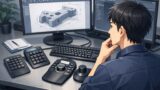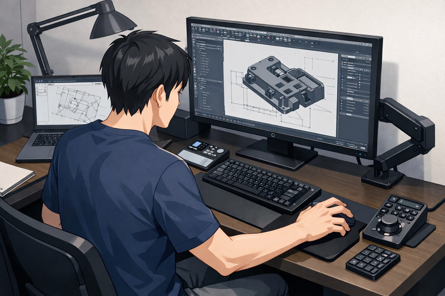 CAD作業では、すべてを一度に整えなくても、主画面の位置、キーボードの幅、マウスまでの距離といった基本から見直すだけで、環境の負担が軽くなることがあります。狭い机では、完璧な正解を探すより、自分の作業しやすい形に少しずつ調整していくほうが続けやすいです。