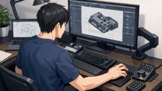 CAD作業で机が狭い時に、モニターをどこへ置くか、キーボードやマウスをどう整えるかを初心者向けに整理。視線、姿勢、手元スペース、入力機器の見直しポイントを、無理のない配置と負担を減らす工夫という観点からまとめた記事です。